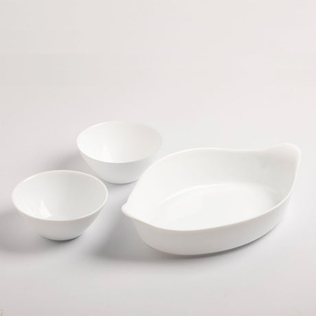 Contiene 1 Refractaria Oval Mediana y 2 Ensaladeras Pequeñas. Es un set funcional que permite la transición de la cocina a la mesa de forma simple y sofisticada.