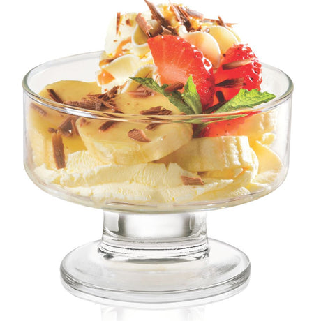 Las copas de vino o las de agua son las apropiadas para este tipo de presentación, pues su cuerpo y boca ancha las hacen perfectas para disfrutar los postres con comodidad.