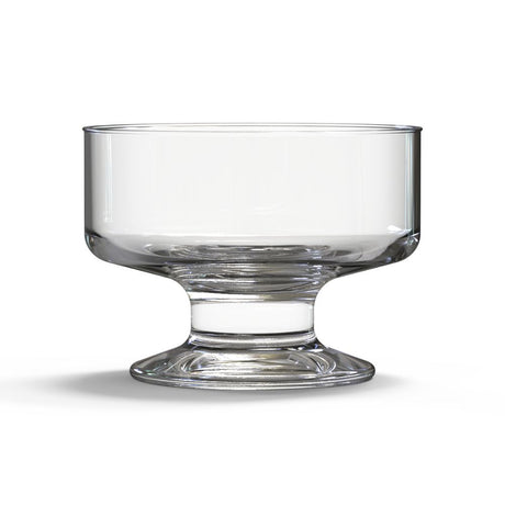 El cuerpo corto y la boca ancha evitan enredos con los cubiertos, y le da libertad al comensal de gozar el postre mejor. Dulces como el helado, los postres, y las gelatinas son comidas que se pueden deleitar en vasos para postres. Su estilo y material permiten apreciar y gozar mejor el contenido.